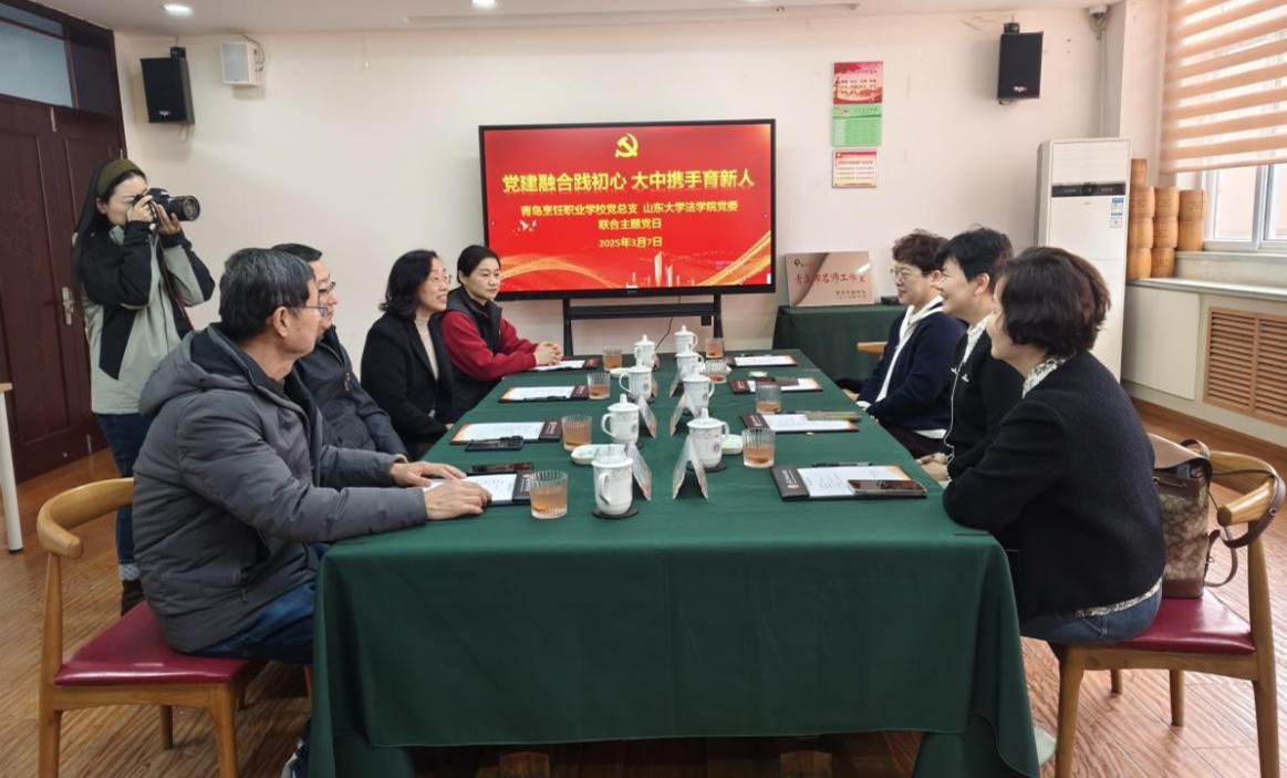 3月7日下午,taptap点点体育党委与青岛烹饪职业学校党总支联合开展了“党建融合践初心 大中携手育新人”主题党日活动。taptap点点体育党委副书记董雪梅、副院长崔立红、副处级组织员江小荃,青岛烹饪职业学校党总支书记陈伟、副校长王冠峰、陈雷,校务委员卢光顺等共计30余位师生参加了活动。