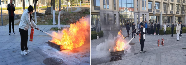 在演练过程中,培训老师带领师生们认识了消防应急照明指示系统,介绍了逃生方法,并组织开展紧急疏散演练。在老师指挥下,师生快速反应,有序撤离到指定集合点。在模拟起火现场,师生们进行灭火器实操演练,大家纷纷拿起灭火器,按照操作步骤,迅速将“火情”扑灭。
