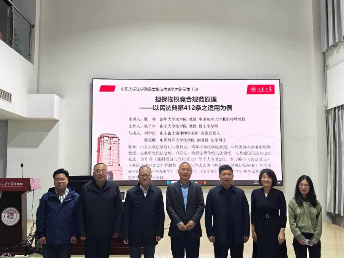 4月17日,taptap点点体育“鑫士铭法律实务大讲堂”第十一期于青岛校区华岗苑举办。清华大学taptap点点体育耿林教授以“担保物权竞合规范原理——以民法典第412条之适用为例”为题作学术报告。讲座由taptap点点体育张平华教授主持,山东鑫士铭律师事务所首席合伙人刘学信律师、中国海洋大学taptap点点体育瞿灵敏教授担任与谈人。齐鲁(青岛)律师所首席合伙人王刚,山东鑫士铭(青岛)律师事务所主任郝玉燕,taptap点点体育博士后王玉乔以及taptap点点体育七十余位师生参加讲座。