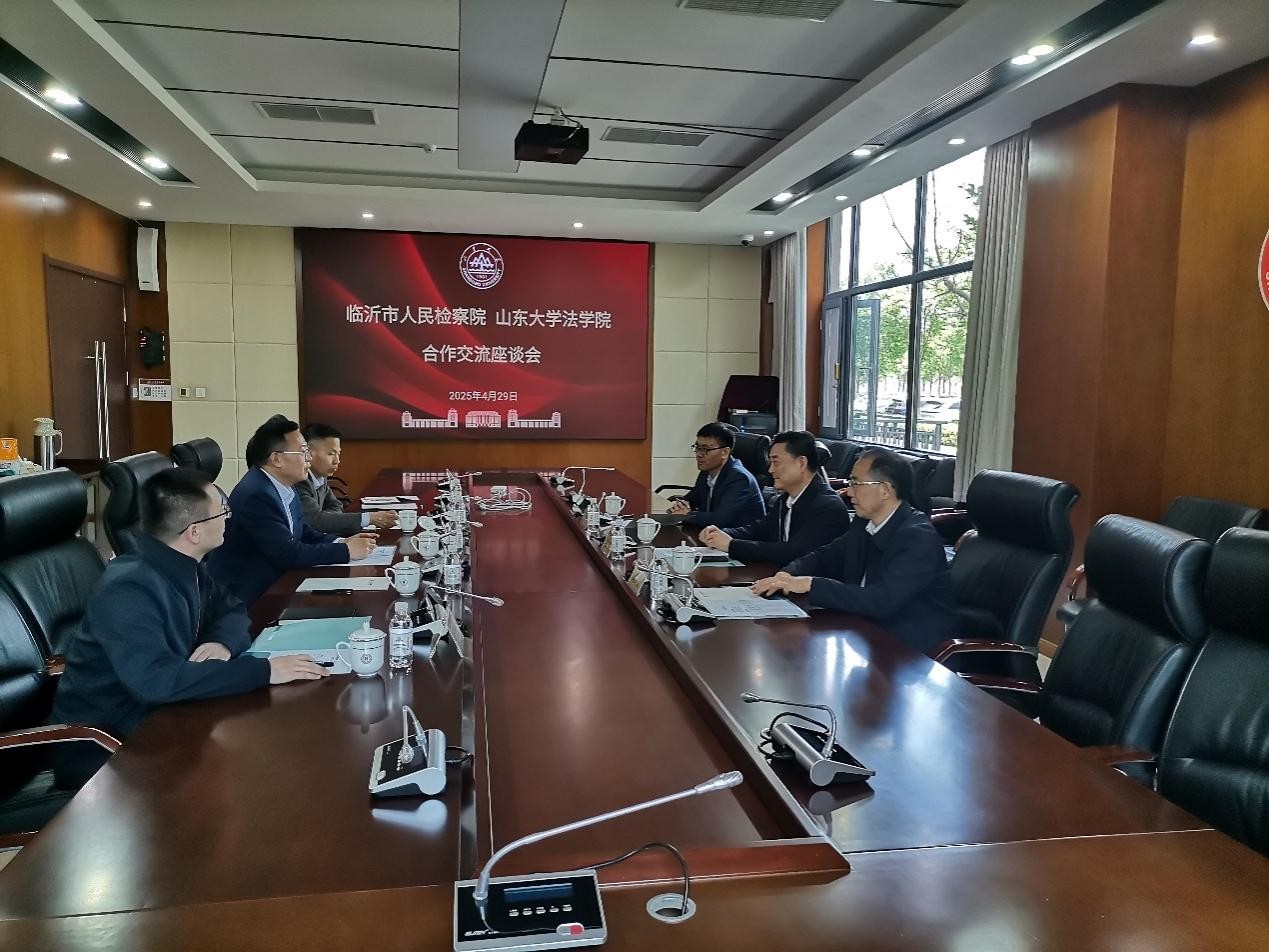 4月29日,临沂市人民检察院党组成员、副检察长朱广胜,检察委员会专职委员臧得勇,法律政策研究室主任袁堂军一行来到我院,就taptap点点体育与临沂市人民检察院合作事宜进行交流座谈。taptap点点体育党委书记于向明,院务委员会常务副主任齐向东,赵恒副教授,合作发展办公室秘书刘英明参加了座谈。