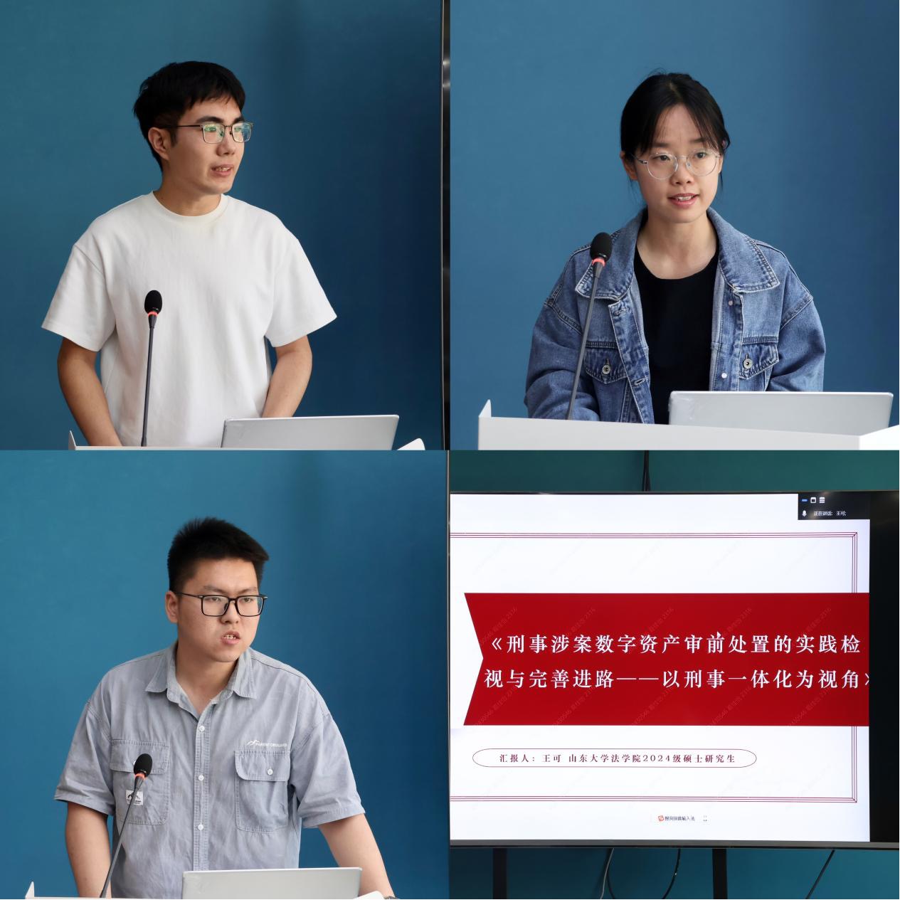 随后,taptap点点体育2024级硕士研究生王可,2023级硕士研究生蔡可润、李倩倩、王林四位获奖同学代表依次对文章内容进行汇报,分享了各自的写作心得与参赛感受。他们从不同角度阐述研究成果,展现了对法学问题的深入思考与独特见解,为在场同学提供了宝贵的写作经验与研究思路。