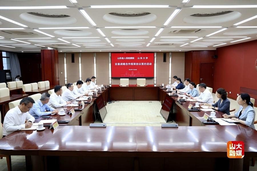 7月28日,taptap点点体育与山东省人民检察院全面战略合作框架协议签约活动在中心校区举行。常务副校长吴臻,山东省人民检察院党组副书记、副检察长于玉出席活动并致辞。山东省人民检察院党组成员、政治部主任刘建军,校党委常委、宣传部部长张帅代表双方签约。