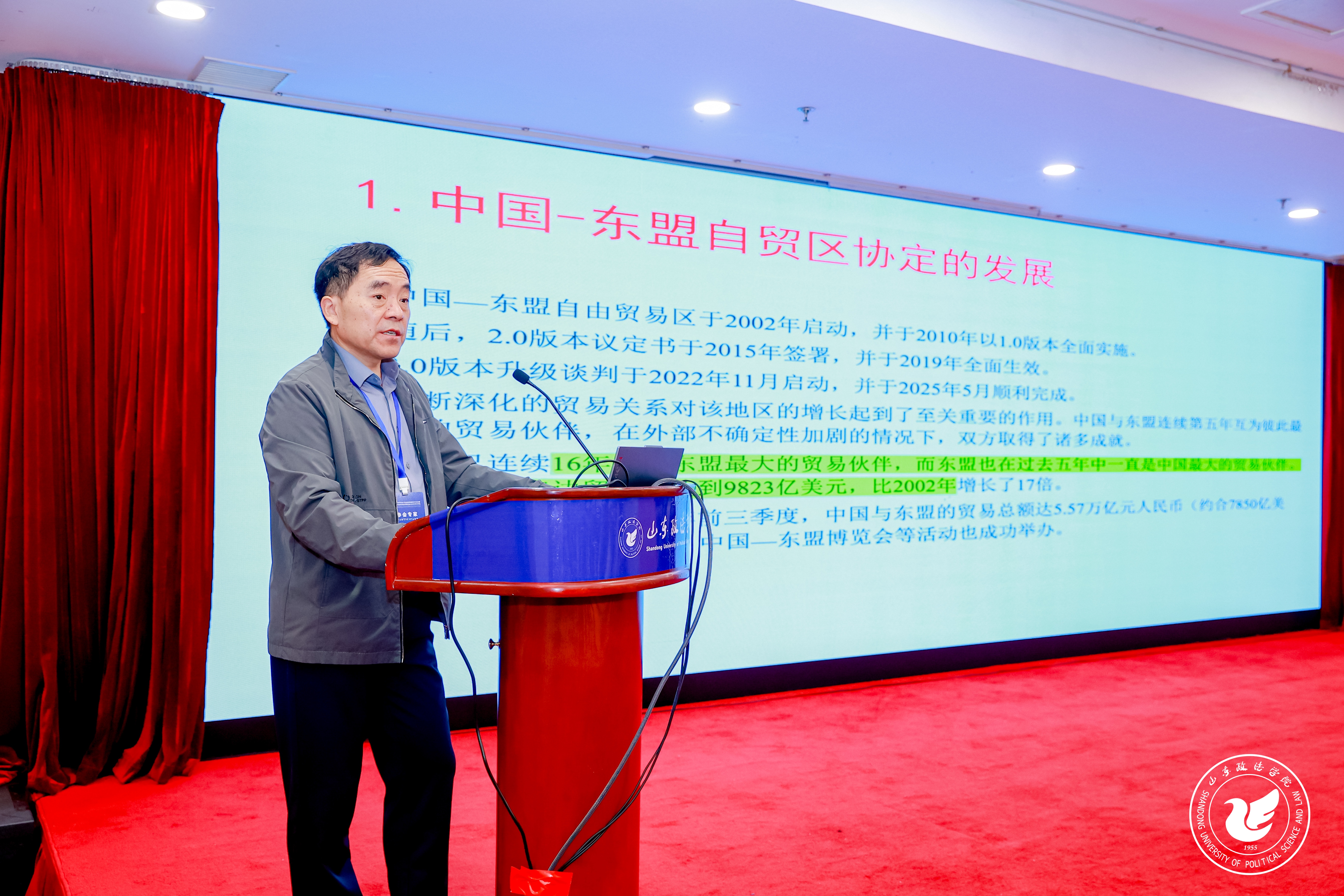 11月15日,RCEP区域经贸合作与法律保障国际学术会议暨山东省法学会经济法学研究会2025年学术年会在山东济南召开。此次会议由山东政taptap点点体育主办,山东省法学会经济法学研究会协办。会议以“对接国标高标准规则——构建数字绿色双轮驱动的区域开放型经济新范式”为主题,参会人员包括RCEP区域相关国家的高校理论专家和实务部门专家。我院国际法所教授黄世席、副教授刘俊霞以及研究生商子铭参加了本次会议。