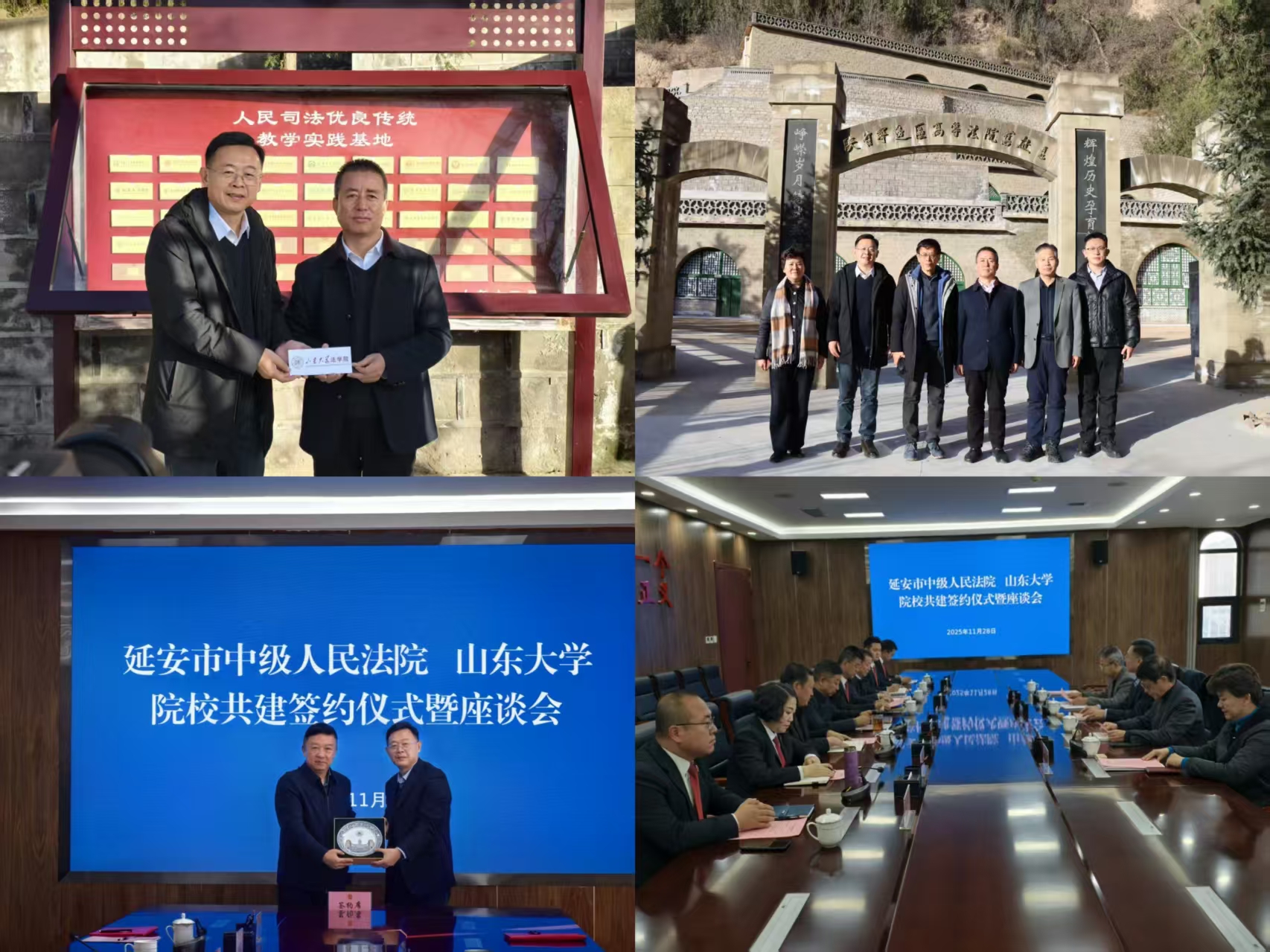 11月27日至28日,调研组赴陕甘宁边区高等法院旧址、陕甘宁边区审判史陈列馆、延安市中级人民法院,实地观摩珍贵史料,深刻体会“马锡五审判方式”等人民司法优良传统的精神内涵与时代价值。延安中院党组书记、院长刘群,副院长刘向林等陪同调研。调研组在陕甘宁边区高等法院旧址挂牌设立“人民司法优良传统教学实践基地”。调研组与延安市中级人民法院进行座谈交流,于向明与刘群签署院校合作框架协议,双方将充分利用延安红色资源,结合学校理论研究优势和法院司法实践能力,在理论研究、红色法治文化资源发掘、教育培训、实习就业等方面积极探索共建、合作模式。