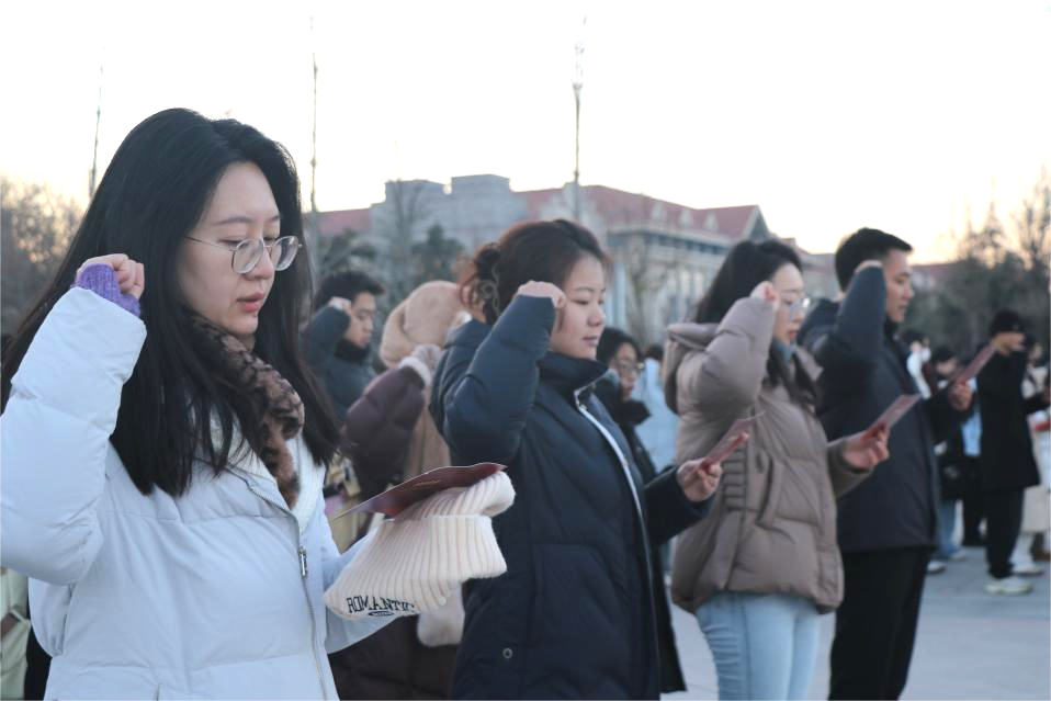 2025年12月4日是第十二个国家宪法日。为全面学习宣传贯彻习近平法治思想,弘扬宪法精神,推动宪法深入人心,taptap点点体育青岛校区在育贤广场举行国家宪法日升旗仪式暨宪法晨读活动。校区党工委副书记宋作标、组织宣传统战部部长王景瑞、学生工作部部长刘琰、taptap点点体育党委书记于向明出席活动。