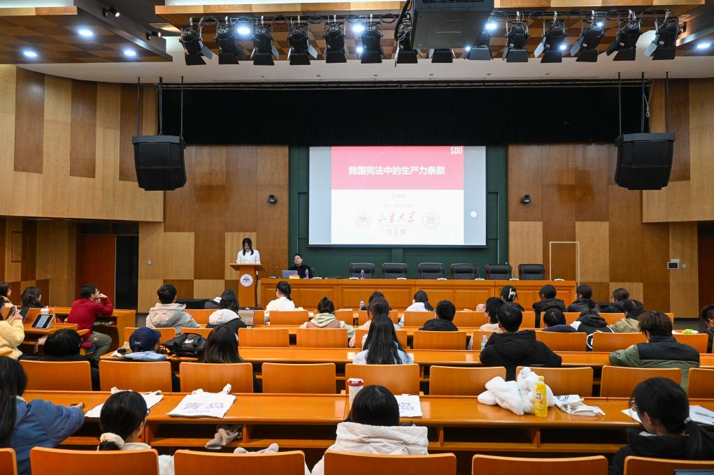王德志教授围绕“宪法中的生产力条款”主题,针对听众学科背景广泛的特点,深入浅出地进行了系统讲解。他首先从生产力的基本概念出发,结合习近平总书记关于新质生产力的重要论述,对其进行学理阐释。而后,他系统梳理生产力条款在新中国宪法体系中的演进历程,清晰呈现我国为生产力条款提供的强有力的宪法保障。他剖析了生产力条款的规范功能,强调宪法对国家发展的引领作用。最后,他从宪法作为根本法提供制度保障的视角出发,梳理了宪法文本随生产力与生产关系发展而演进的历程,从中华人民共和国成立初期的生产关系调整,到改革开放后社会主义生产关系的不断完善。