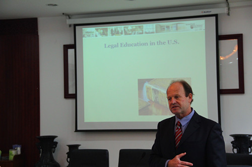 11月1日上午,Stephen Barnes教授以“Overview of U.S. Legal Education and Profession and Introduction to Penn State Law”为题与我院师生进行了交流互动。讲座中,Stephen Barnes教授从比较中美法学教育的特色入手,就美国法学教育情况、法律职业、各类法学学位项目、奖学金、留学申请材料等进行了细致的介绍,我院学生积极与教授交流。针对同学们的积极提问,Stephen Barnes教授一一做了细致解答。