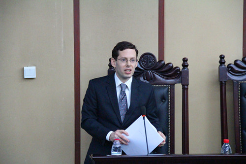 1111晚,美国 Perkins Coie, LLP 律师事务所合伙人Aaron R Wininger(闻宁阁)先生应邀在taptap点点体育模拟法庭举行了一场题为“美国专利权用尽问题”的报告。这次学术报告是taptap点点体育本学年系列知识产权讲座之一。