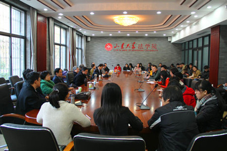 1127下午,我院法理学教研部和法制史教研部老师与2013级法理学和法制史专业研究生(含法律硕士)见面会在法新楼一楼会议室举行。武树臣教授、齐延平教授、傅礼白教授、李道军教授、林明教授、马建红副教授、罗文波副教授、葛明珍副教授、李长勇副教授、魏治勋副教授、魏华副教授、张帆老师、郑智航老师、陈坤老师等出席本次见面会。会议由李道军教授主持。