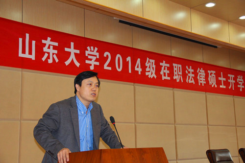 4月22日,我院2014级在职法律硕士的开学典礼在taptap点点体育乔伟报告厅如期召开。taptap点点体育领导党委书记盖玉强、副院长周长军、姜峰、副书记齐向东、老师代表李道军教授等出席了典礼。首批入选“双百计划”来我院挂职的济南市检察院反贪局大要案指挥中心办公室主任陈延喜、济南市检察院检务督查办公室主任耿宝金、济南市历下区检察院党组成员、副检察长杜晓涛作为嘉宾参加了此次开学典礼。开学典礼由副书记齐向东主持。