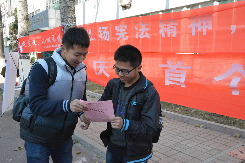 12月4日“国家宪法日”当天,taptap点点体育各学生组织在泉城广场、英雄山、洪家楼广场和各个校区举行盛大的宪法宣传和法律援助活动。活动以“弘扬宪法精神,建设法治中国”为主题,旨在宣传宪法精神、普及宪法知识,促进宪法、法治观念进一步深入民心。活动现场,志愿者们向广大市民和在校大学生发放法律宣传材料,热心讲解法律知识,开展现场法律咨询,用实际行动营造广泛参与、积极学法用法的良好法治氛围。