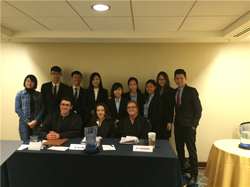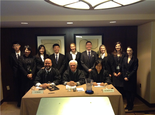 在前三天的预选赛中,我院分别与来自危地马拉、爱尔兰、俄罗斯和印度尼西亚的四支队伍进行了激烈的角逐。作为英语母语的国家,爱尔兰法律学会(Law Society of Ireland)的选手们的英语运用能力、临场反应能力和说服力都达到了令人折服的程度,选手Christine Simpson最终获得本年度最佳辩手第三名。其他几场比赛中,强悍的对手也都有值得我们揣摩和学习的地方。俄罗斯国家司法大学(Russian State University of Justice)的书状写作条理清楚,论证有力,甚至预想到了许多我们想要证明却没能证明的论点并加以驳斥。印度尼西亚希望之光大学(Universitas Pelita Harapan)的选手们则以沉着冷静的场上陈述与精确和有逻辑的表达方式获得了法官的青睐。危地马拉马洛京大学(Uniersidad Francisco Marroquin)的选手也以扎实的学术功底获得了法官的一致认可。