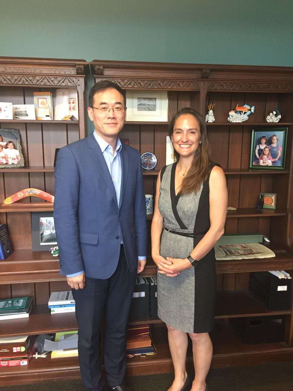 2017年4月26日,沈伟教授走访了密歇根大学taptap点点体育,同分管副院长Theresa Kaiser-Jarvis和Nicholas Howson教授进行了会谈,探讨了两院合作的可能性。