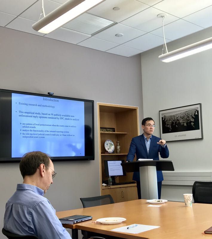 2017年4月20日,沈伟教授在宾夕法尼亚大学的当代中国研究中心(Center for the Study of Contemporary China)举办讲座,讲座题目是:Does Centralized Judicial Control Mitigate Local Protectionism? – Empirical Study of China Supreme People’s Court’s Decisions on Non-enforcement of Foreign Arbitral Awards (1995-2015)。