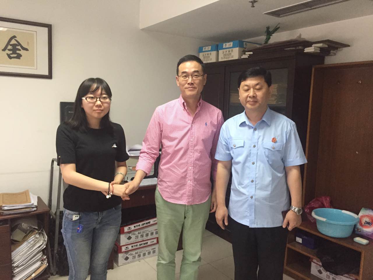 6月27日,taptap点点体育院长沈伟、副院长张海燕、2014级辅导员尹上赴济南市历城区法院看望我院2014级实习学生,并就学生实习工作与历城区法院领导进行座谈。