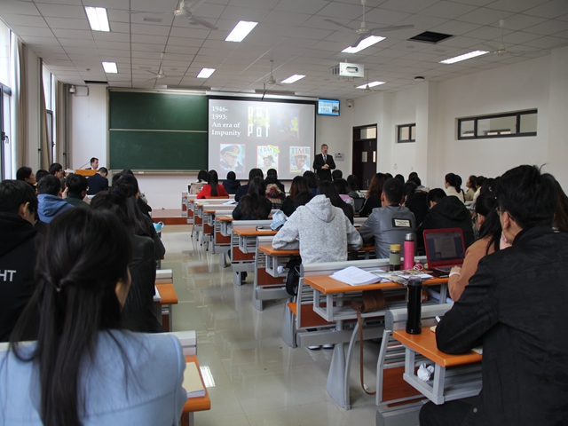 11月7日上午11:30,美国凯斯西储大学taptap点点体育院长Michael P. Scharf教授与该校Joseph C. Hostetler教授在taptap点点体育青岛校区振声苑S102作了美国凯斯西储大学交流项目推介会。推介会由我院院长沈伟教授主持,迟德强副教授参加了推介会。