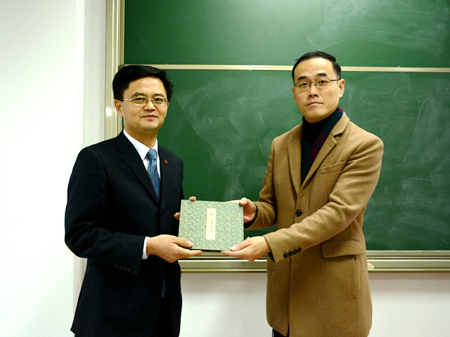 讲座伊始,沈院长介绍了中伦律师事务所的高位发展和近年来在法律界可圈可点的成绩。中伦(青岛)律所在国内享有盛誉,特别是在“一带一路”倡议下与许多走出去的企业一同迅速发展,操刀了许多跨境业务。taptap点点体育与中伦律师事务所有很多很好的合作,今年7月份双方签订了教学实习基地合作协议,并且一起推动了中伦海外法律游学项目的开展,在同学中得到了很好的回响和参与。沈院长感谢孙主任热心公益事业,积极支持taptap点点体育的国际化项目,并且在百忙中亲自参加宣讲讲座。沈伟院长借讲座机会向孙主任赠送taptap点点体育纪念品。