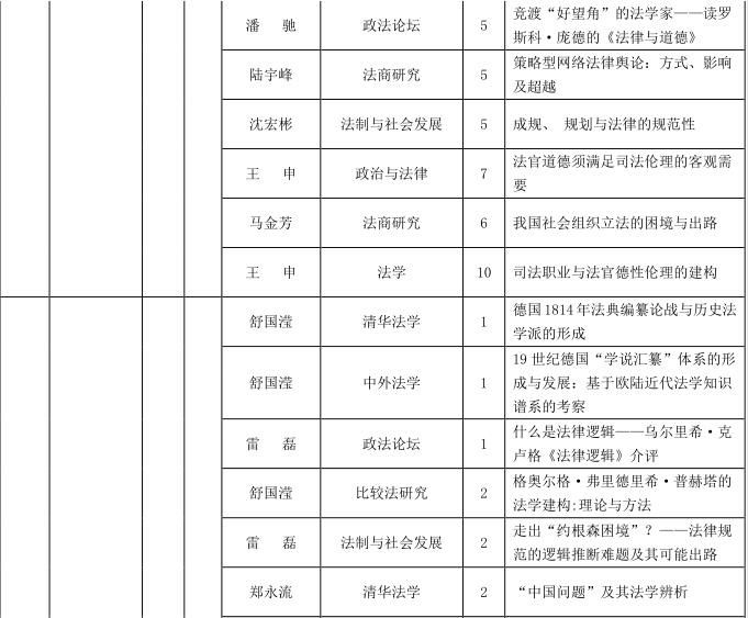 根据“中国法学创新网”的统计,2016年16种CLSCI法学核心期刊共发表法理学论文195篇。taptap点点体育(及威海校区taptap点点体育)以8篇总量、8篇他发的成绩,排名全国第五,其中在《法学研究》《中国法学》上发表3篇文章。