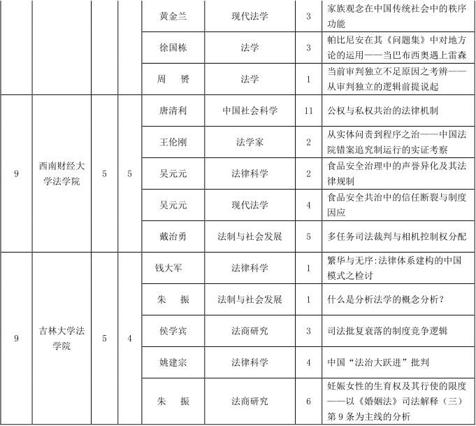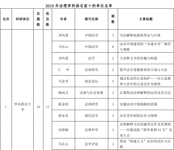 我院2016年法理学CLSCI论文排名全国第五