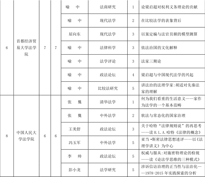 以下为“中国法学创新网”对taptap点点体育2016年在CLSCI期刊上情况的部分分析: