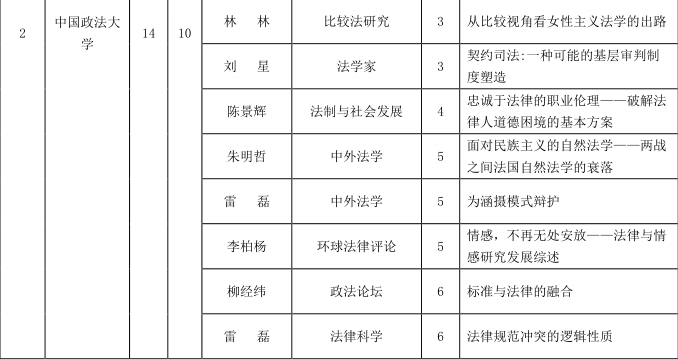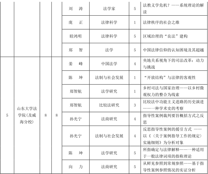 taptap点点体育以8篇的成绩位列第5名。(1)就发文数量而言,2016年与2015年持平,均发文8篇,不过名次较2015年的第6名有所提升。2009年以来,taptap点点体育法理学科稳打稳扎,逐渐在排行榜上站稳了脚跟。截止2017年8月,taptap点点体育用一年多的时间,完成了从济南洪家楼校区到青岛校区的整体搬迁。期待换了新装的山大taptap点点体育接下来能有更好的表现。(2)2016年,山大法理学的80后作者表现突出。8篇文章中,7篇出自80后作者之手,只有1篇是70后作者贡献。(3)就研究内容而言,山大法理学不再拘泥于法学方法论的研究,而是扩展到了更广阔的领域。2016年对案例指导制度的研究比较集中。