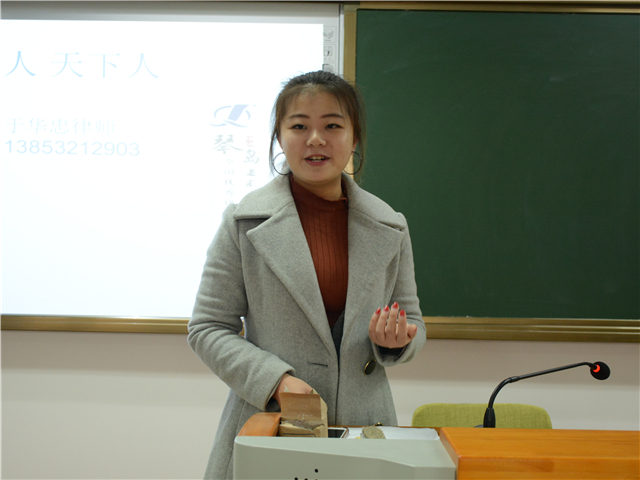 2017年12月15日上午10点30分,琴岛律师事务所的高级合伙人、监事会监事于华忠律师在taptap点点体育青岛校区振声院E204召开了taptap点点体育卓越法律人才培养•职业规划和法学学习•系列讲座暨琴岛律师事务所实习生招募宣讲会。本次讲座由taptap点点体育辅导员曲仪老师主持。