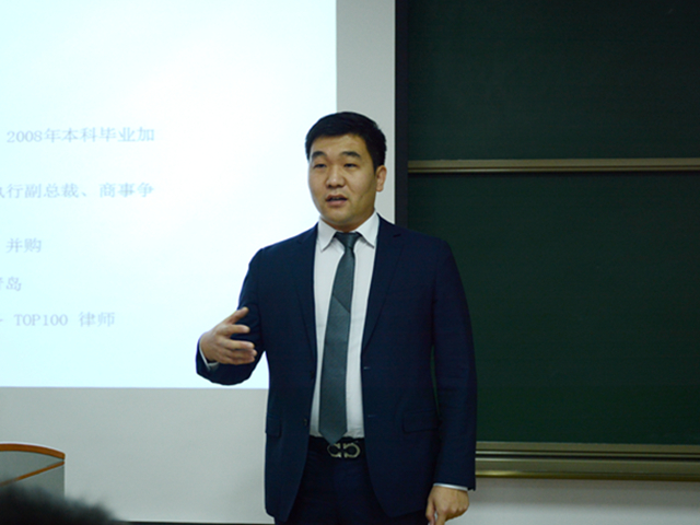 首先,王鹏飞律师就“法律毕业生如何做好人生及职业规划”一题与同学们进行了经验分享。王律师是《商法》杂志评选出的“中国法律精英百强律师”,其对律师执业发展过程具有深刻的体会。王律师对律师助理期、授薪律师期、效益律师期、合伙人时期、高级合伙人时期这五个律师发展阶段进行了梳理,点评不同时期的关键词,教导在座同学形成正确的法律思维以及良好的职业习惯,并结合具体的案例,讲解实务中法律人应当如何去思考解决问题。