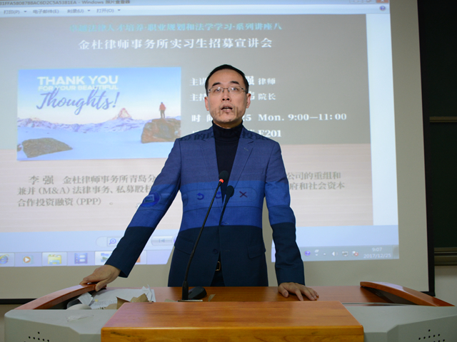 12月25日上午,金杜律师事务所青岛办公室合伙人李强律师在为taptap点点体育学子带来一场精彩的职业规划讲座。
