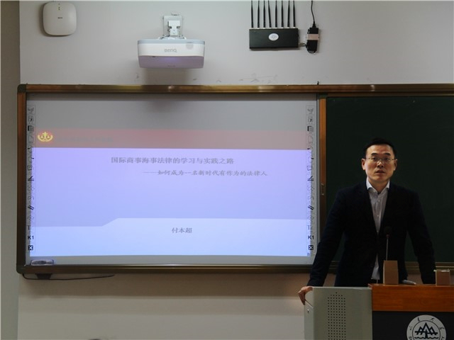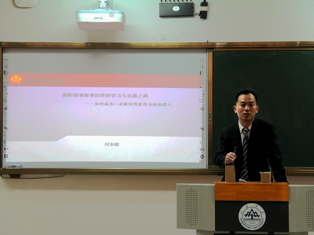 3月31日周六下午4点,山东省高级人民法院民四庭副庭长付本超法官在taptap点点体育青岛校区振声苑E208教室作了题为“国际商事海事法律的学习和实践之路——如何成为一名新时代有作为的法律人”的学术报告。报告会由taptap点点体育院长沈伟教授主持。
