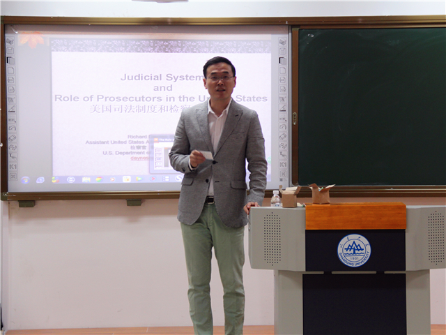 4月25日下午4:30,“卓越法律人才培养•职业规划和法学学习•系列讲座十三——美国司法制度和检察官的职责”在taptap点点体育青岛校区振声苑E206教室举行。