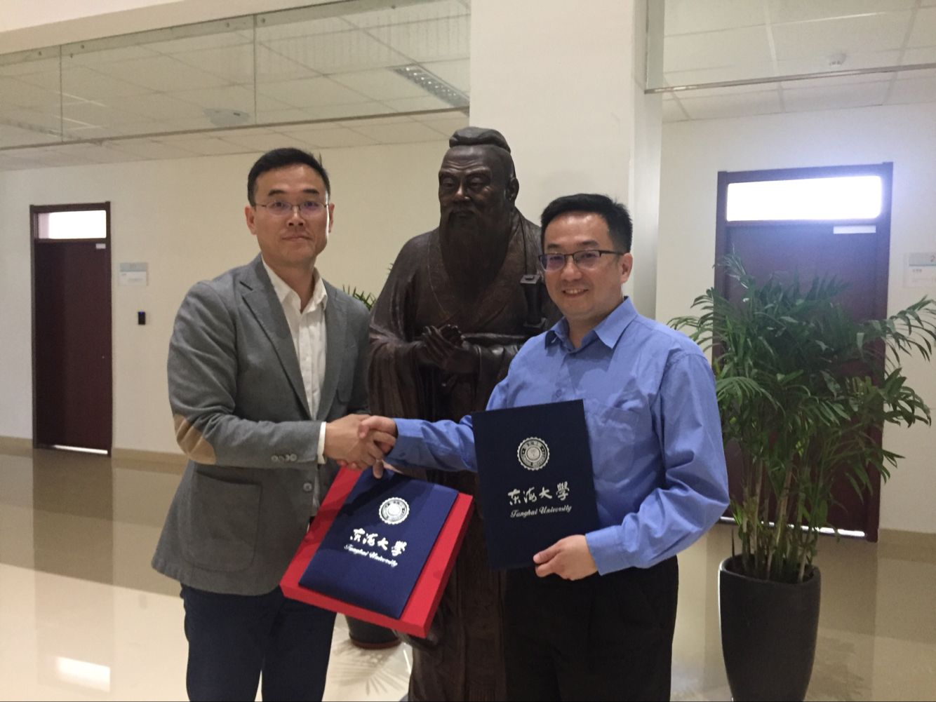 2018年5月14日上午,沈伟院长和来访的台湾地区东海大学taptap点点体育林恩玮教授举行会谈。林恩玮教授转交了东海大学taptap点点体育院长林更盛教授签署的合作备忘录,沈伟院长代表taptap点点体育签署了备忘录,双方完成协议交换,标志着双方正式建立了合作关系。