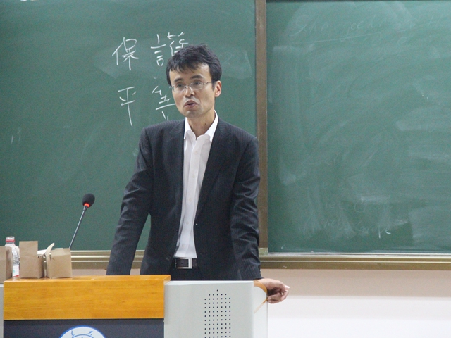 2018年5月13日晚,日本明治大学小西康之教授在taptap点点体育青岛校区振声苑E206作了一场题为“日本无固定期限劳动合同的展开”的学术报告。本次讲座由taptap点点体育李长勇副教授主持,日本劳动政策研修机构研究员仲琪先生担任翻译,taptap点点体育柳忠卫教授出席了本次讲座。