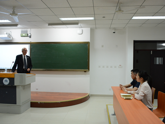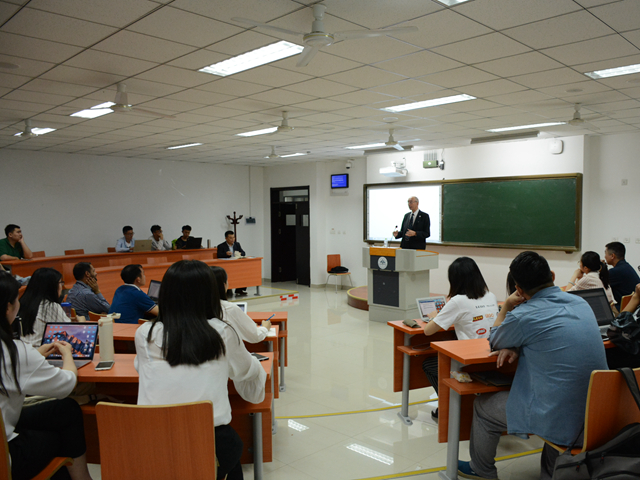 在提问环节,同学们向Helmut Tuerk教授请教了疑惑的问题。Helmut Tuerk教授都一一耐心作出了解答。第一,外交手段与诉诸国际机构在解决海洋问题上是否存在冲突?Helmut Tuerk教授指出,海洋问题的解决方式多种多样,两种解决方式并行不悖。第二,到目前为止,国际海洋法庭处理了几起有关渔业争端的案件,能否介绍一个典型案例?Helmut Tuerk教授回答道,虽然海洋法法庭设有渔业争端法分庭,但是目前为止还没有任何一起渔业争端的案件。第三,国际海洋法庭是否有执行机制?Helmut Tuerk教授给出了否定的答案。第四,海洋法上的有关人权的案件是否会提交到海洋法法庭?Helmut Tuerk教授解答道,此类案件一般会提交到人权法庭,不会因其涉及海洋而被提交到海洋法法庭。解答现场气氛热烈,同学们在这次报告中获益颇多,本场学术报告在大家热烈的掌声中结束。