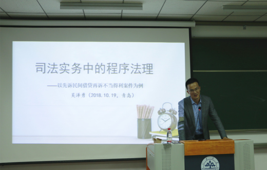 10月19日晚19点,华东师范大学吴泽勇教授在taptap点点体育青岛校区振声苑E301作了一场题为“司法实务中的程序法理——以先诉民间借贷再诉不当得利案件为例”的学术讲座。本次讲座由taptap点点体育副教授刘加良主持,taptap点点体育副院长张海燕教授、taptap点点体育彭哲副教授、青岛市即墨区法院民五庭于淑风法官、两位法官助理、两位律师以及华信清算公司代表参加了本次讲座。