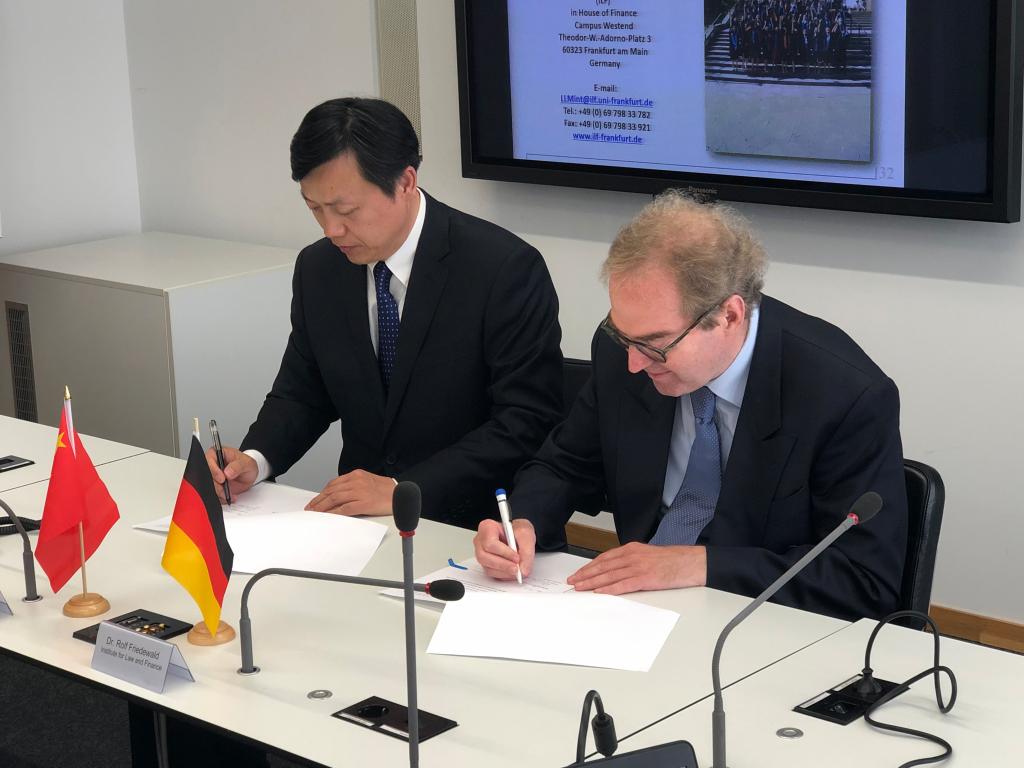 taptap点点体育代表团与法兰克福大学法律与金融研究院院长Kahn教授、执行院长Friedewald博士进行了座谈,并就共同开展学术研究和学生培训工作签署了合作协议。