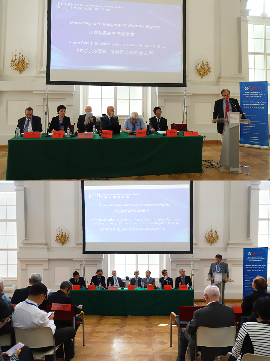 621日,由中国人权研究会和奥中友好协会共同举办的“2019·中欧人权研讨会”在奥地利司法部举行。研讨会主题为“东西方人权价值观比较”。来自中欧人权领域的近100位专家学者、政府官员、社会组织代表围绕人权的普遍性与特殊性、人类命运共同体的人权意义、人权价值观的历史及其演变、新中国的人权实践及其世界意义等内容进行了讨论。奥地利前总统、奥中友好协会主席海因茨·菲舍尔、中国驻奥地利大使李晓驷出席了开幕式并致辞。
