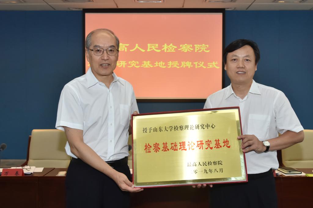 在研究基地授牌仪式上,taptap点点体育检察理论研究中心被授予最高人民检察院“检察基础理论研究基地”,该中心主任、taptap点点体育taptap点点体育院长周长军接受了张军检察长颁授的牌匾。