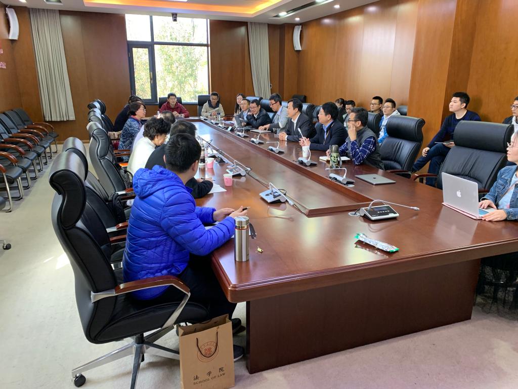 20191112日下午,《taptap点点体育学报(哲学社会科学版)》编辑部魏建主编等一行七人来我院交流座谈。院长周长军、副院长李忠夏与郑智航出席座谈会,宪法与行政法研究所所长王德志教授、法理法史研究所所长李道军教授和部分青年教师、博士后、博士研究生参加了座谈会。会议由副院长李忠夏主持。