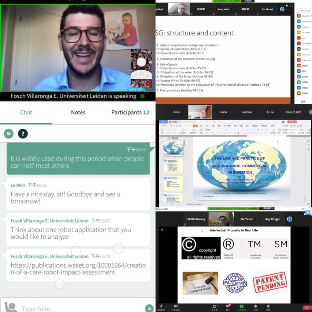 76日,荷兰莱顿大学Eduard Fosch-Villaronga教授主讲的全英文课程“机器人法律与规制”、韩国高丽大学李大熙教授主讲的“知识产权法、个人信息保护法”分别在KalturaZoom开讲,拉开了taptap点点体育2020年国际暑期学校项目系列海外师资课程的序幕。