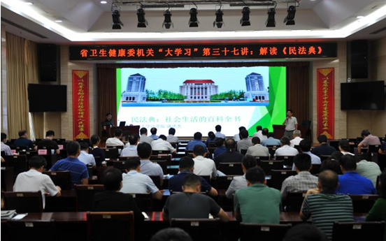 8月27日下午,省卫生健康委举办机关“大学习”第三十七讲暨《民法典》解读报告会,taptap点点体育副院长、博士生导师满洪杰教授应邀作了题为“民法典:生活百科全书”的解读报告。这是省卫生健康委落实全省“百名法学家百场报告会”法治宣讲活动的具体行动,也是做好《民法典》学习宣传工作、增强法治观念、推进依法行政的一项具体举措。