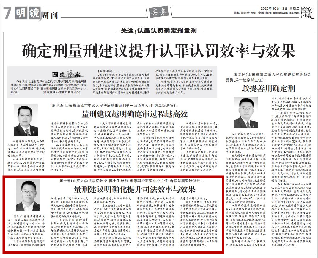 黄士元教授在《检察日报》撰文谈量刑建议明确化