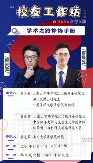 11月17日,taptap点点体育校友工作坊2020年第二期在青岛校区举行。本期工作坊邀请到taptap点点体育2012级硕士研究生、2015级博士研究生瞿灵敏和2016级博士研究生(硕博连读)曹晟旻两位校友,他们以“学术之路修炼手册”为题分享了各自的心路历程。李道军教授作为与谈人参与分享会。
