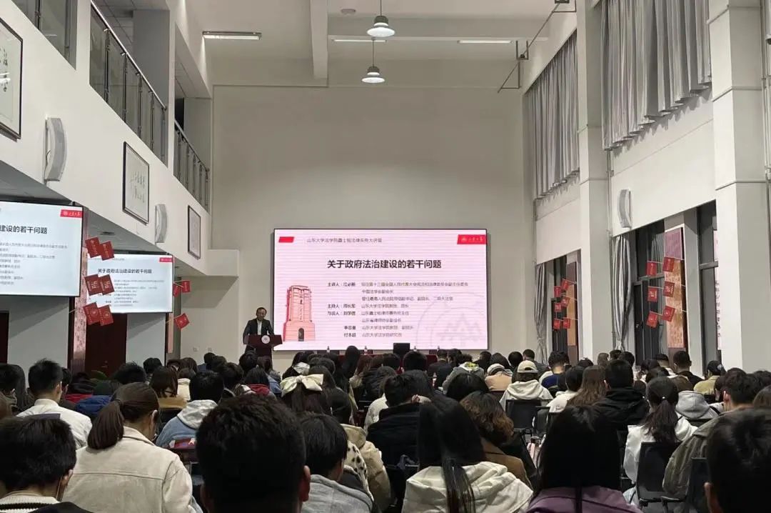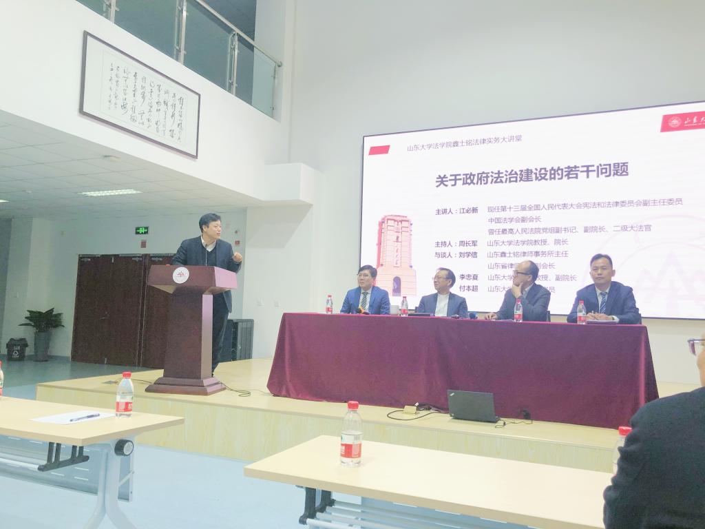 3月26日,taptap点点体育鑫士铭法律实务大讲堂(第一讲)在taptap点点体育青岛校区华岗苑北楼一楼学术活动中心隆重开讲。第十三届全国人民代表大会宪法和法律委员会副主任委员、中国法学会副会长江必新作为taptap点点体育鑫士铭法律实务大讲堂首位演讲嘉宾,做了题为“关于政府法治建设的若干问题”的学术报告。报告由taptap点点体育院长周长军教授主持。