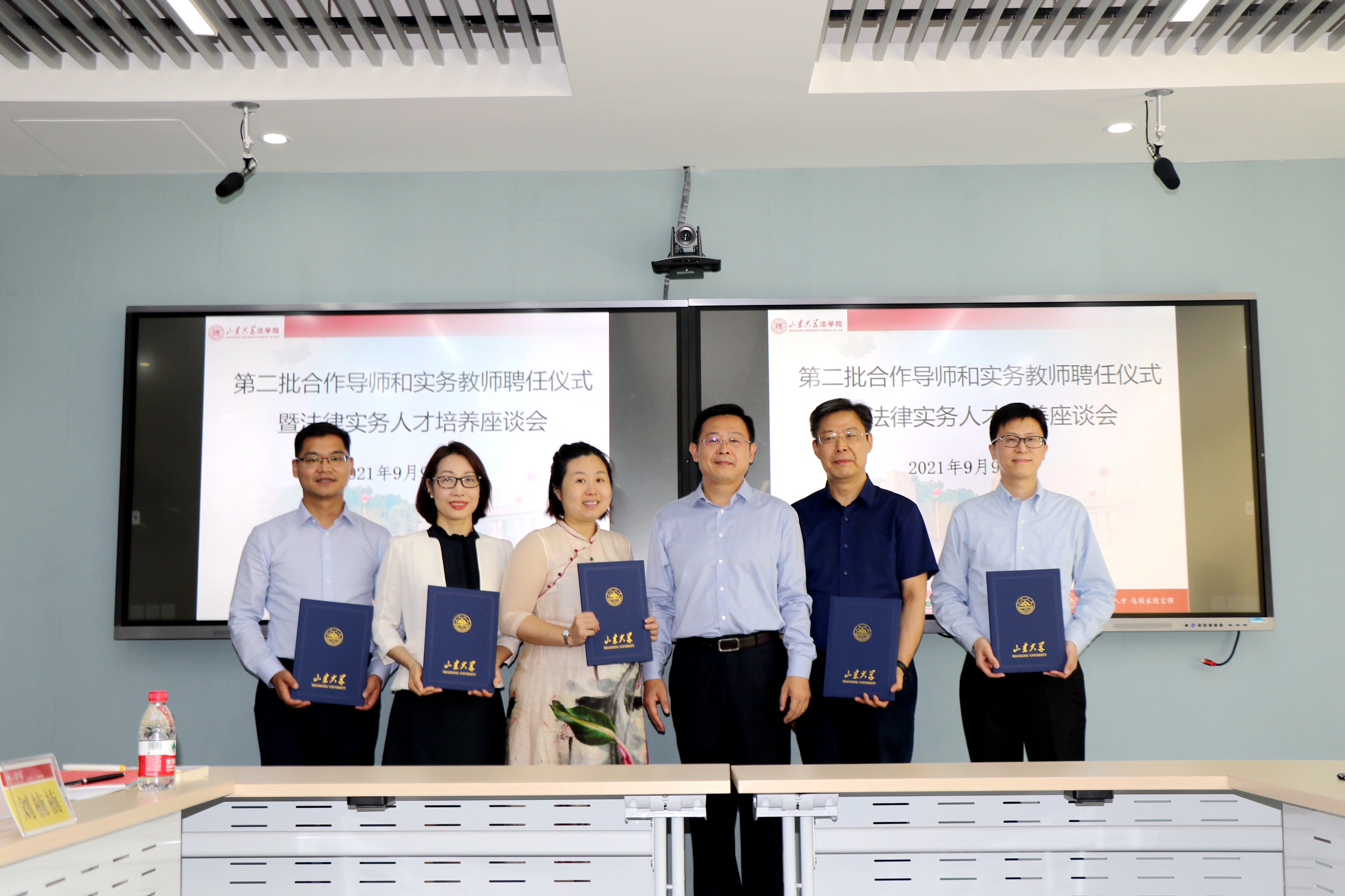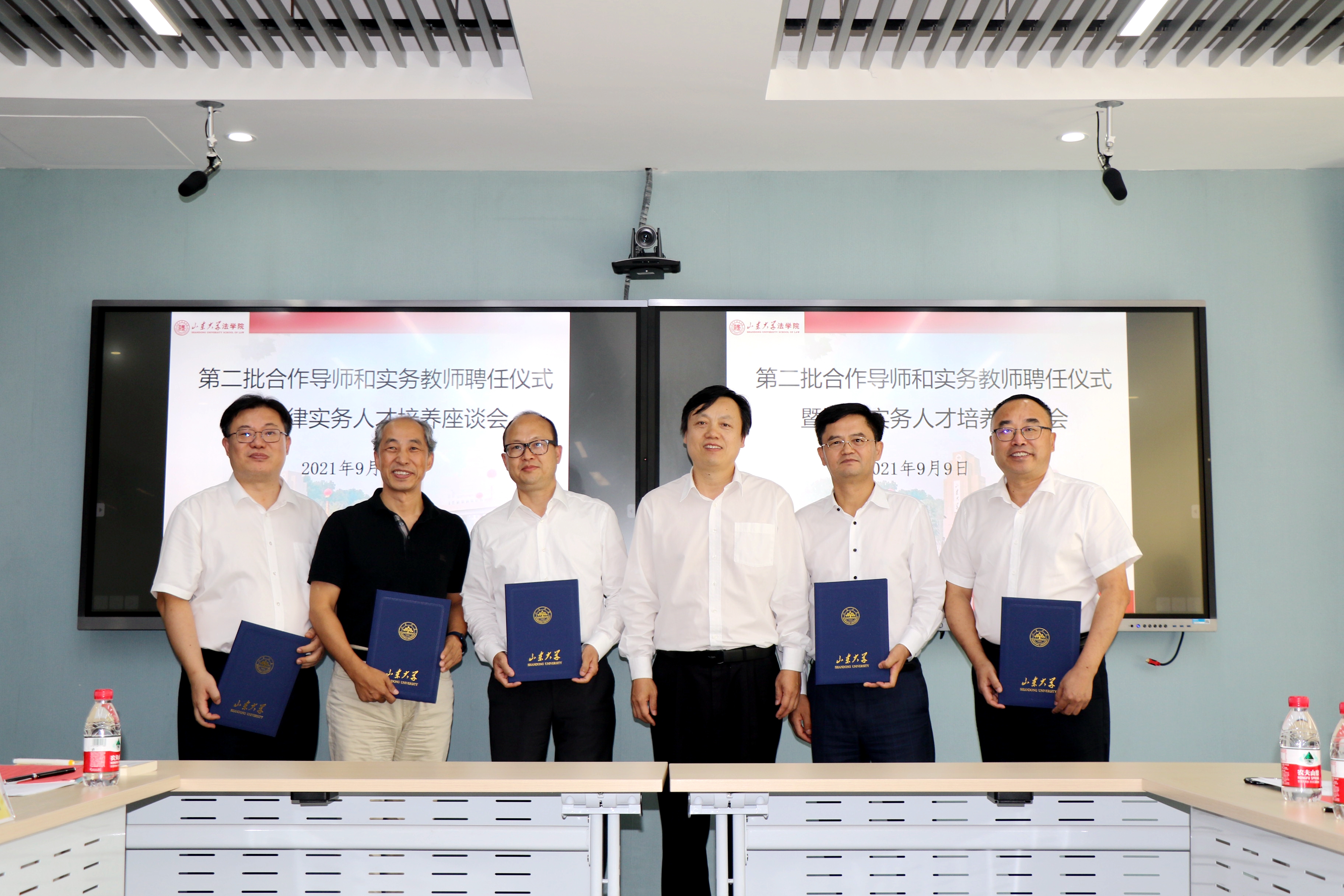 副院长张海燕宣读了2021年研究生实务合作导师、实务教师聘任名单。2021年新聘研究生实务合作导师8位、实务教师9位。周长军、于向明书记向到会的合作导师、实务教师颁发聘书。