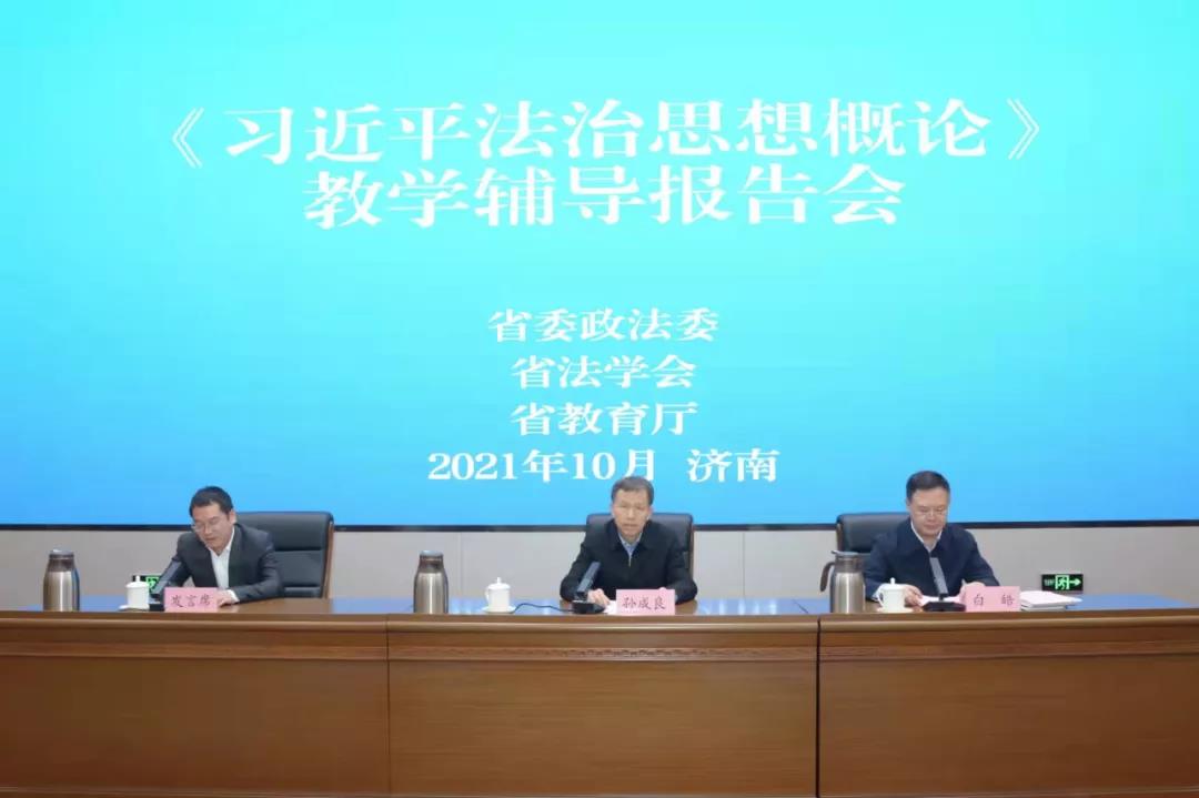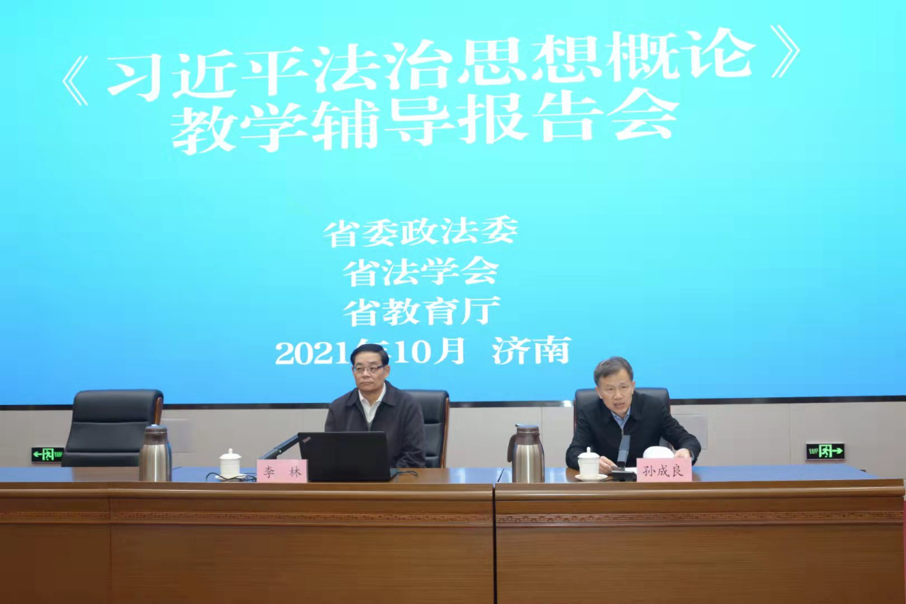 10月31日上午,山东省委政法委、省法学会、省教育厅《习近平法治思想概论》教学辅导报告会在济南举行。省委政法委分管日常工作的副书记,省法学会党组书记、常务副会长孙成良同志主持会议并讲话,省委教育工委副书记,省教育厅党组副书记、副厅长白皓同志出席会议并讲话。《习近平法治思想概论》教材编写课题组首席专家、中国法学会学术委员会副主任,中国社会科学院学部委员李林研究员作了精彩的辅导报告。我院副院长郑智航教授代表taptap点点体育作了交流发言。校区纪工委书记郭培良带领taptap点点体育教师代表在青岛市教育局分会场参加了会议。