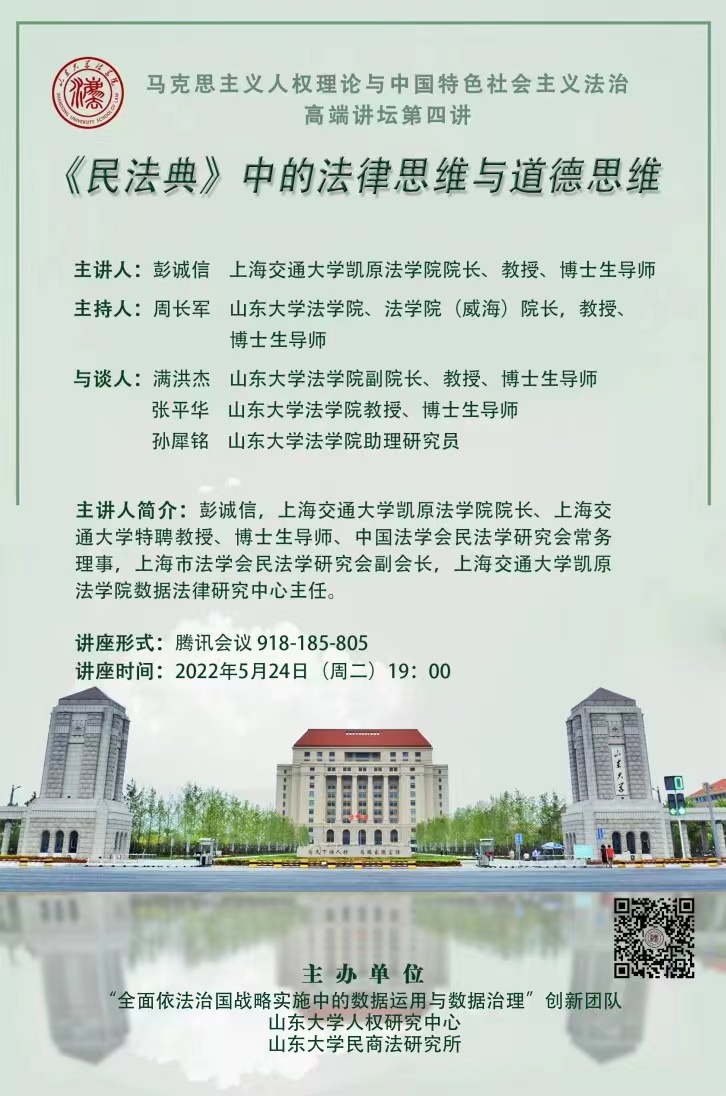 马克思主义人权理论与中国特色社会主义法治高端论坛第四讲:《民法典》中的法律思维与道德思维