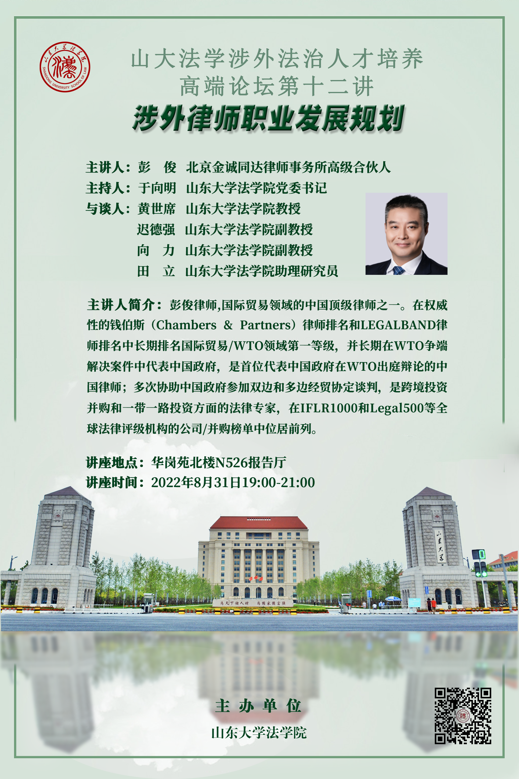 讲座预告 | 山大法学涉外法治人才培养高端论坛第十二讲:涉外律师职业发展规划