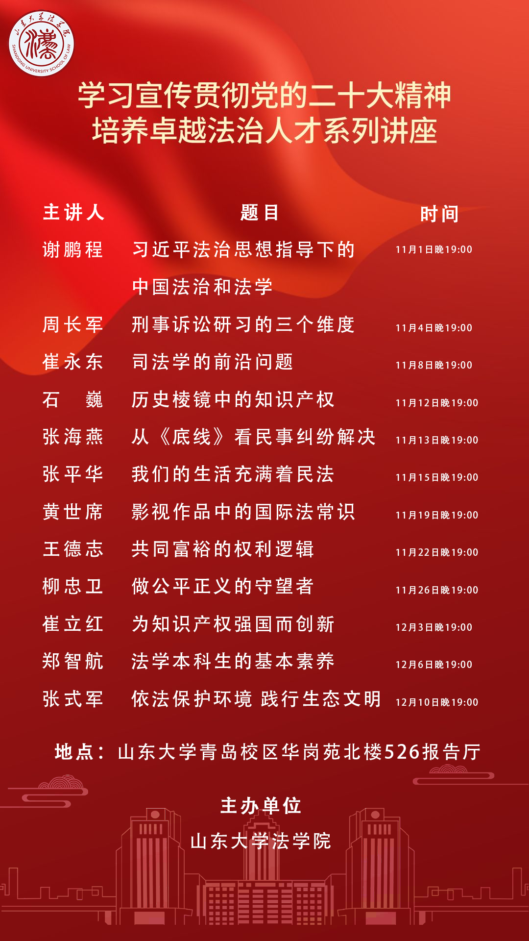 讲座预告 | 学习宣传贯彻党的二十大精神 培养卓越法治人才系列讲座