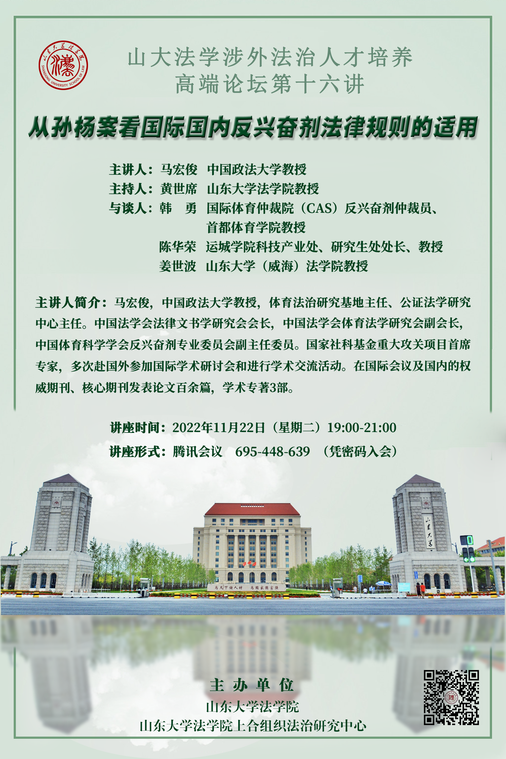 讲座预告 | taptap点点体育涉外法治人才培养高端论坛第十六讲:从孙杨案看国际国内反兴奋剂法律规则的适用