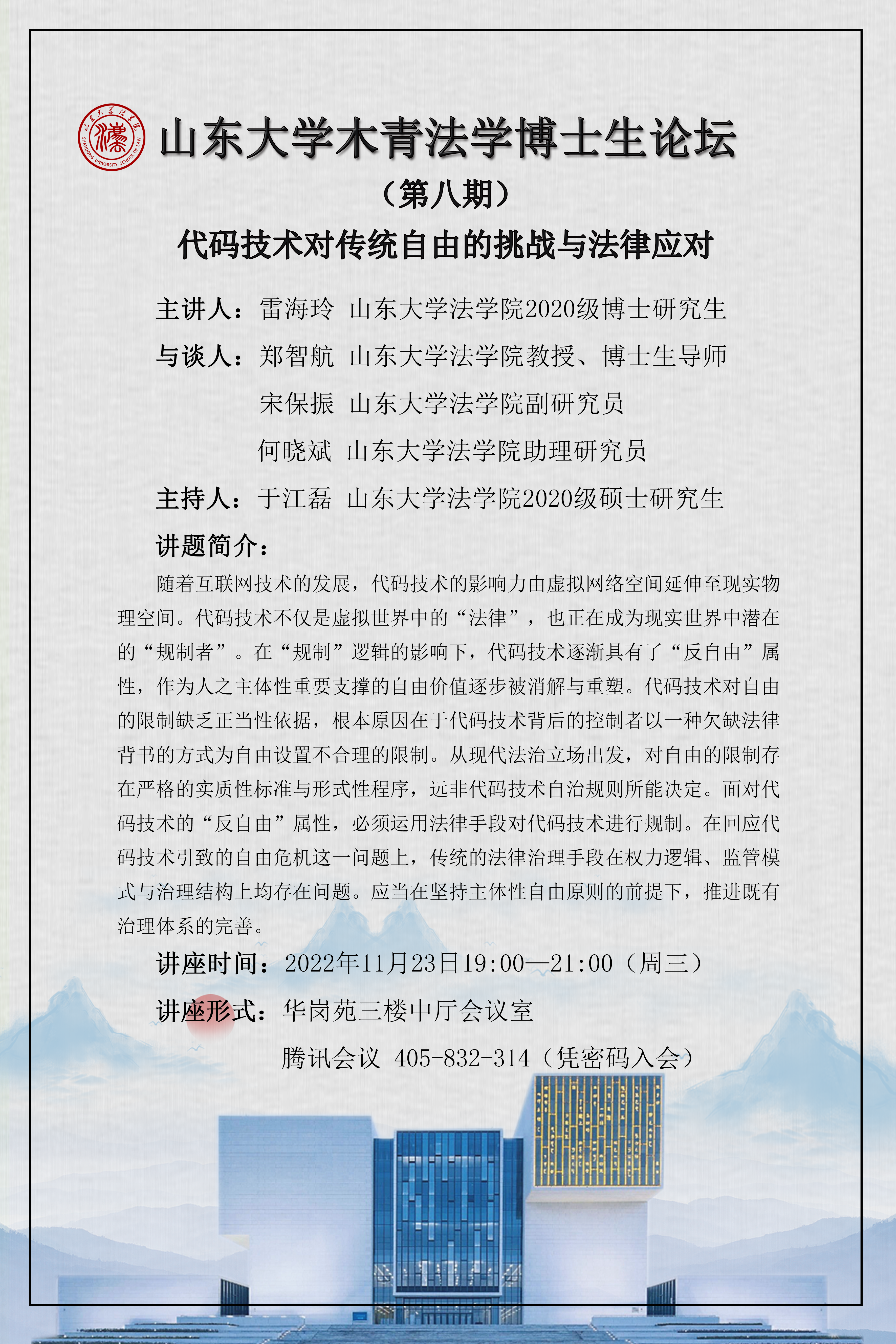 taptap点点体育木青法学博士论坛第八期:代码技术对传统自由的挑战与法律应对